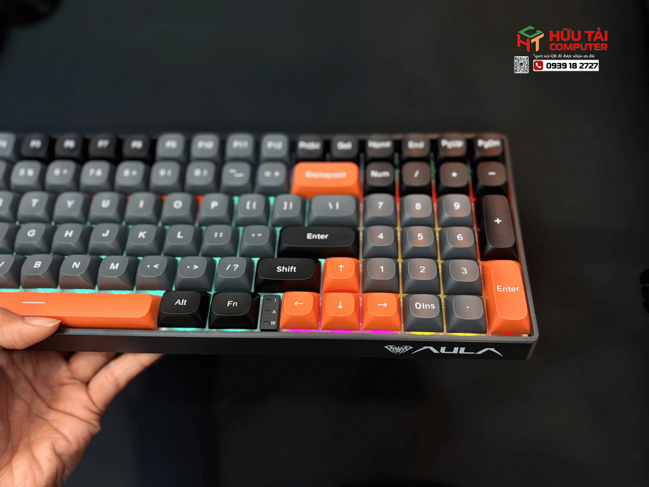 AULA S100 PRO (3411) BÀN PHÍM CƠ GAMING 3 MODE (Phiên bản Đen+xám+cam/ Red switch)