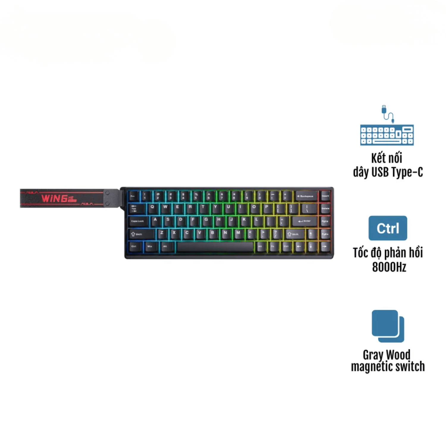 AULA WIN68HE (4067) BÀN PHÍM CƠ GAMING CÓ DÂY (Phiên bản Đen/ Gray Wood magnetic switch - Rapid trigger)