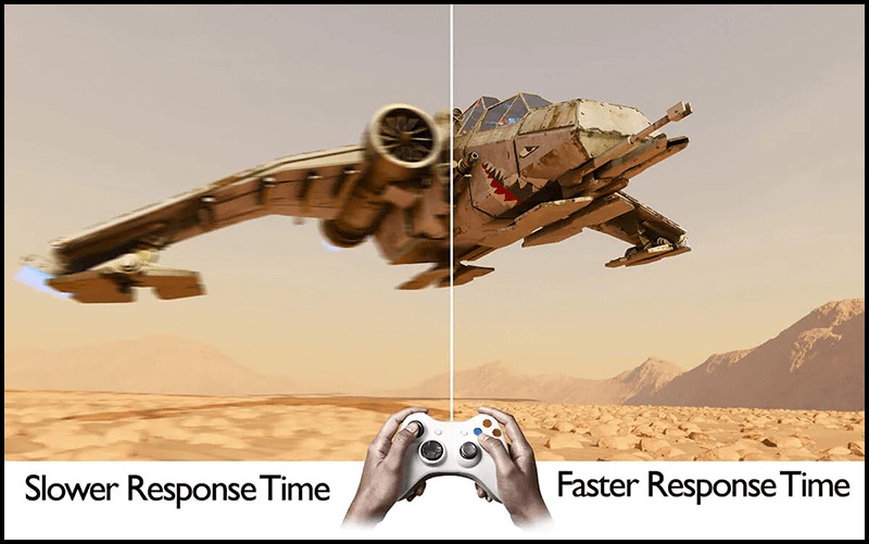 Khác với những điều trên, tốc độ đáp ứng càng thấp thì càng tốt. Thông thường màn hình chơi game thường có tốc độ đáp ứng rất cao, tối thiểu là 5ms và có thể xuống 1ms.