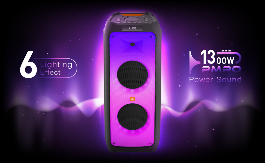 Loa BS97 có công suất đến 1300W âm nhạc lấp đầy không gian với âm treble, bass, và echo có thể điều chỉnh, cũng như 5 hiệu ứng âm thanh EQ, để điều chỉnh âm thanh theo ý thích của bạn. Tạo sự sáng tạo cho bữa tiệc với hiển thị ánh sáng động. Lựa chọn từ 6 chế độ hiệu ứng ánh sáng khác nhau để làm sáng bừng bữa tiệc của bạn.